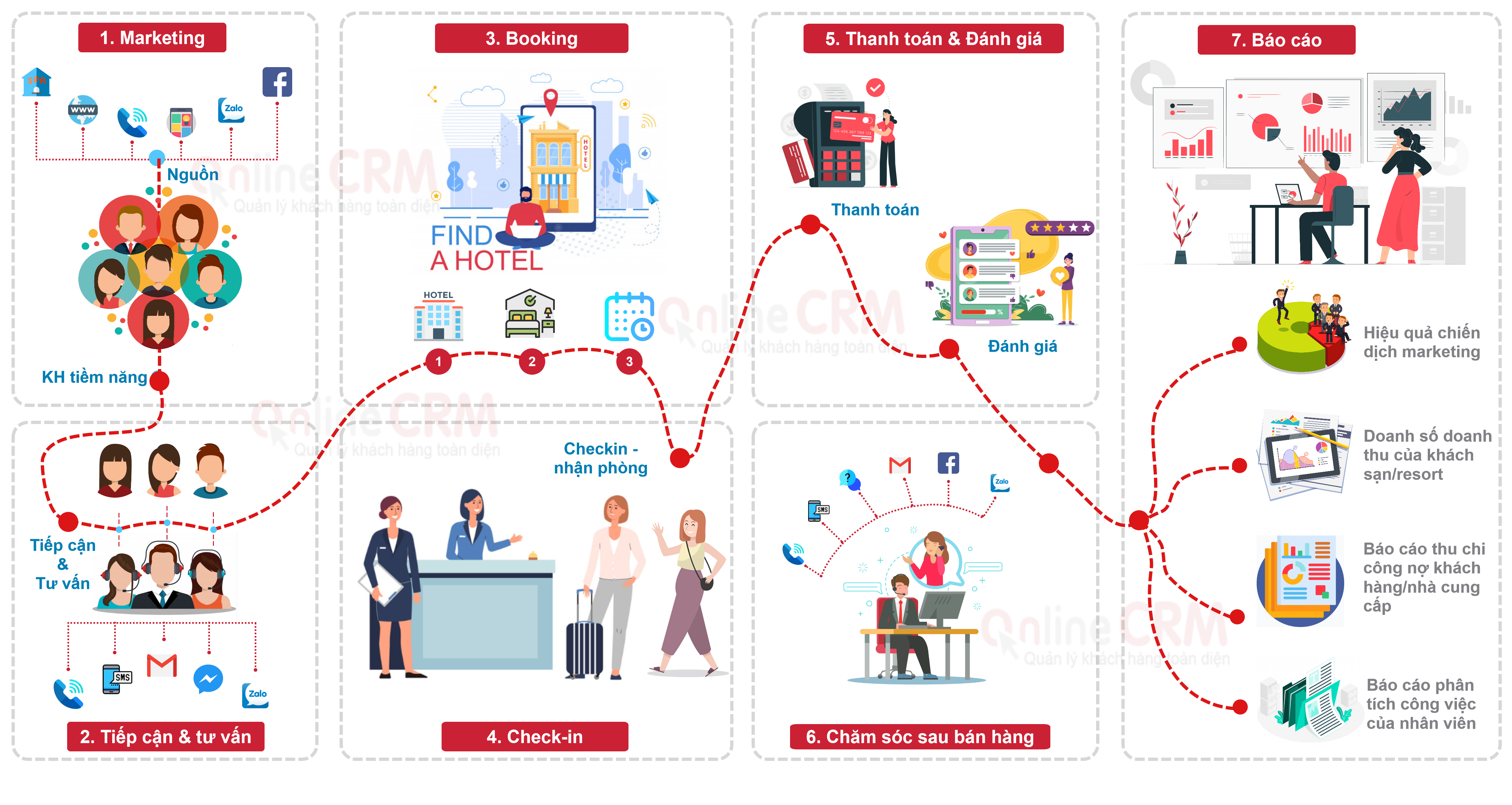 Khi khách hàng đến, nhân viên khách sạn – resort (lễ tân) hỗ trợ khách hàng Check-in – nhận phòng theo các thông tin khách hàng đã booking dưới sự sắp xếp của khác sạn.