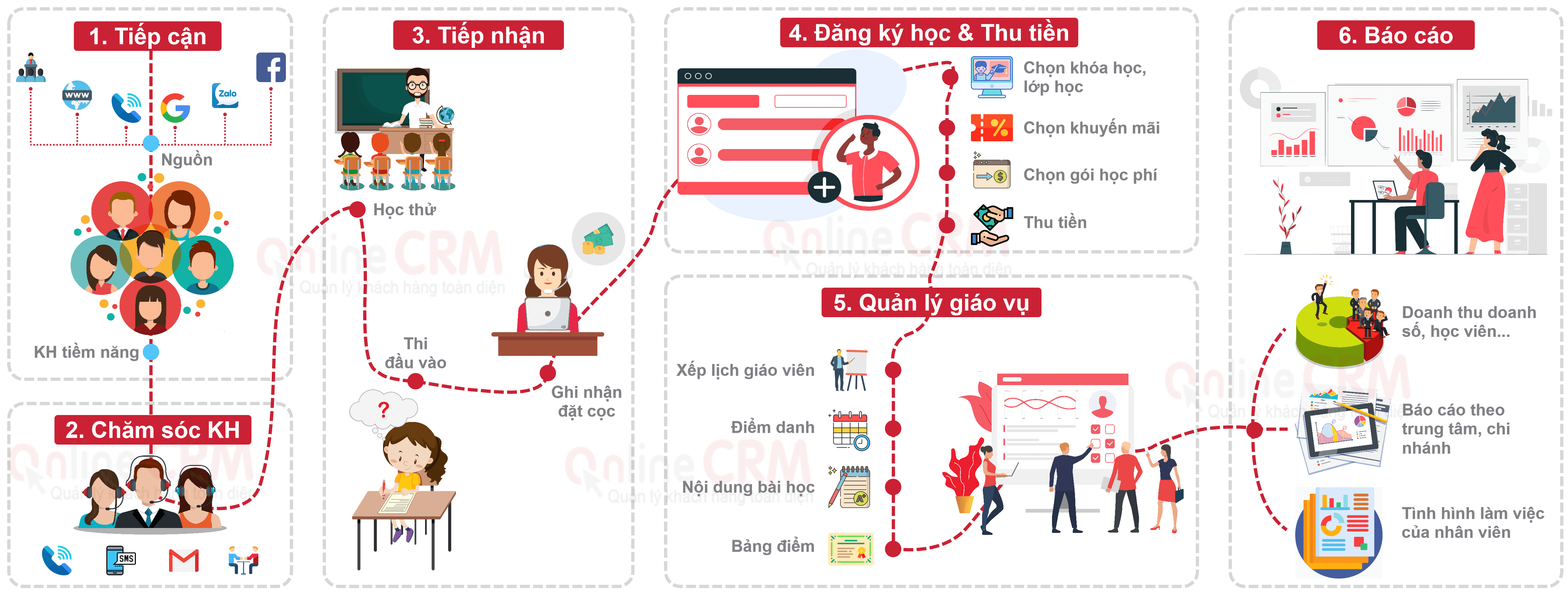 Mất nhiều chi phí cho marketing tìm kiếm khách hàng hằng năm nhưng vẫn không có sự bứt phá về doanh thu dẫn đến lợi nhuận dậm chân tại chỗ. Sales chưa có công cụ hỗ trợ cho việc tiếp cận, chăm sóc, chốt đăng ký,...